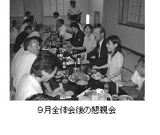 5月30日 総会 片岡市長との懇談会 会場 まるは食堂 りんくう店 8月 2日 全体会 会場 ヒ゜ッツェリア ラ・フォルナーチェ(INAXライフ゛ミューシ゛アム内) テーマ 追悼 山本幸治さんを偲ぶ 「幸ちゃんの志を受け継ぐ」 9月 6日 全体会 会場 丸久旅館 勉強会 テーマ 「最近の電力事情」 講師 中部電力 常滑営業所 浅野営業課長 名古屋支社 総務・広報G 牧村スタッフ副長 10月20日 松阪市のまちづくり 視察 セントレア←高速船→松阪、トラック市、おもてなし処、市民活動センター等の視察