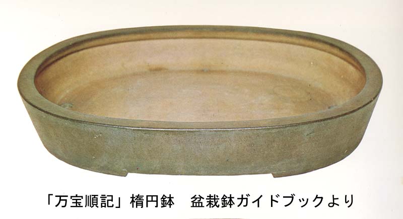 「万宝順記」という作者または工房の小判鉢(中国古鉢)は、人気があったので、この形を写した鉢を「万宝形」と呼んでいる。