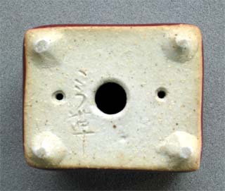 常滑山草鉢 鴻陽作 #24A15-16 タタラ角鉢 辰砂
