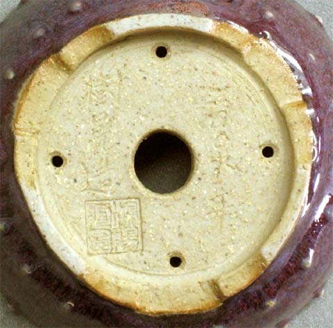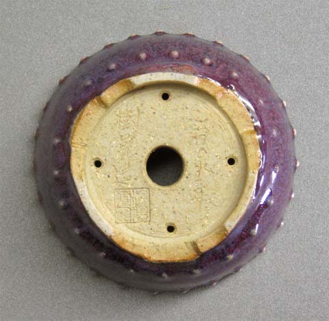 #A0980 丸ワン形上下鋲打 均窯手 樹晃(鴻陽窯)作 2009年号入 : 115*115*48mm : 11000円(送料、税込), 売約済