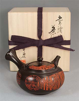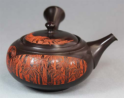 Tokoname black Teapot with bamboo grove by